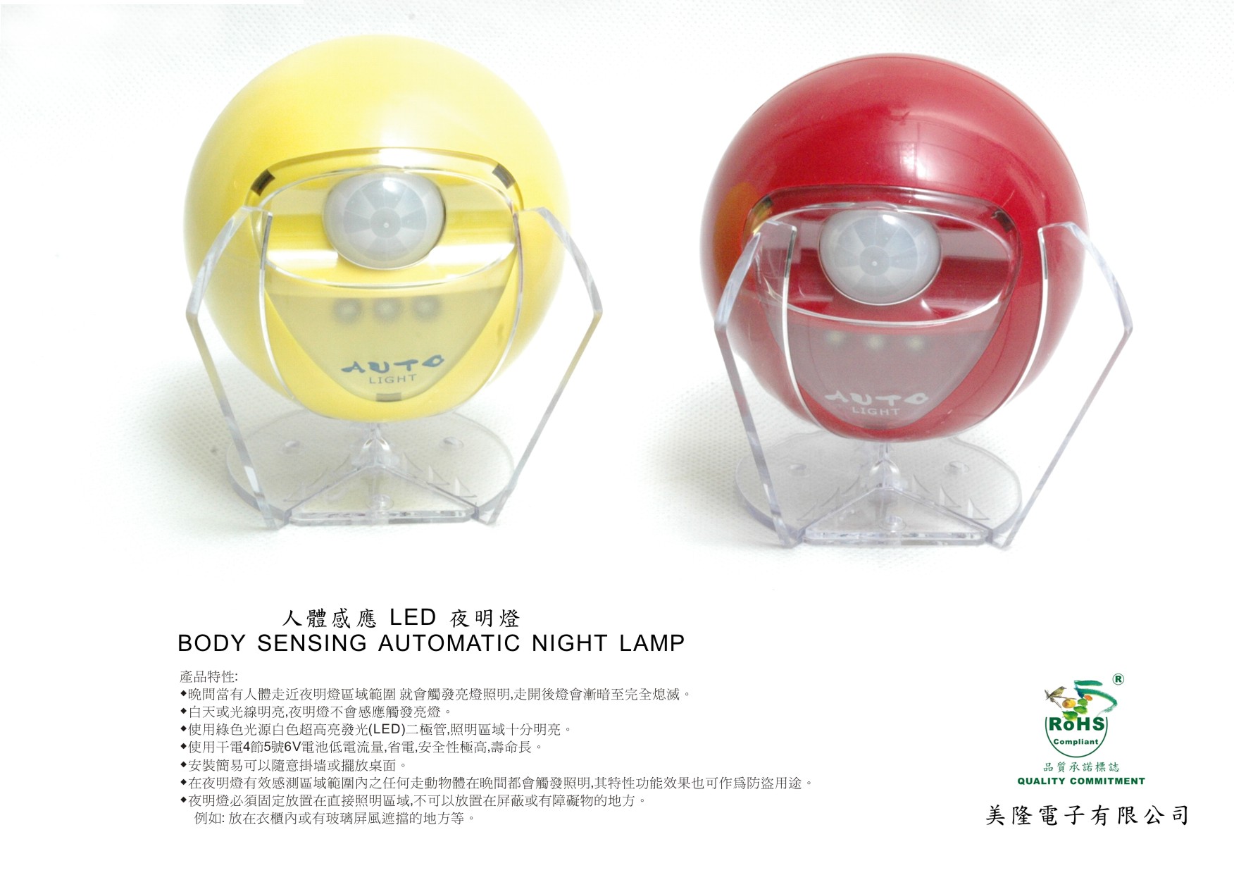 ◆ 在夜明燈有效感測區域範圍內之任何走動物體在晚間都會觸發亮燈,其特性功能亦可作防盜用途。
