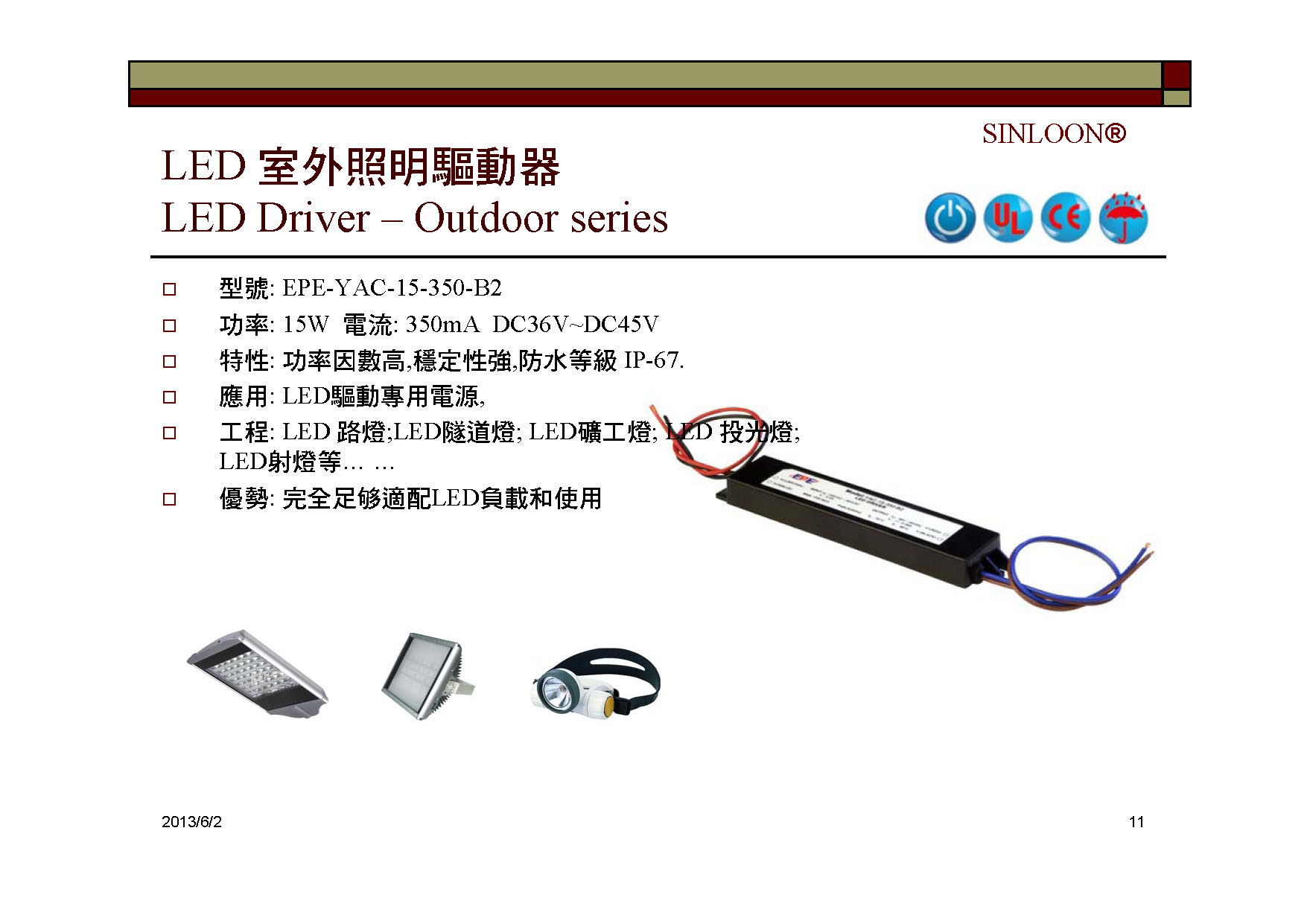 | SINLOON® | LED 室外照明驅動器 | YAC-15-350-B2 | |||||