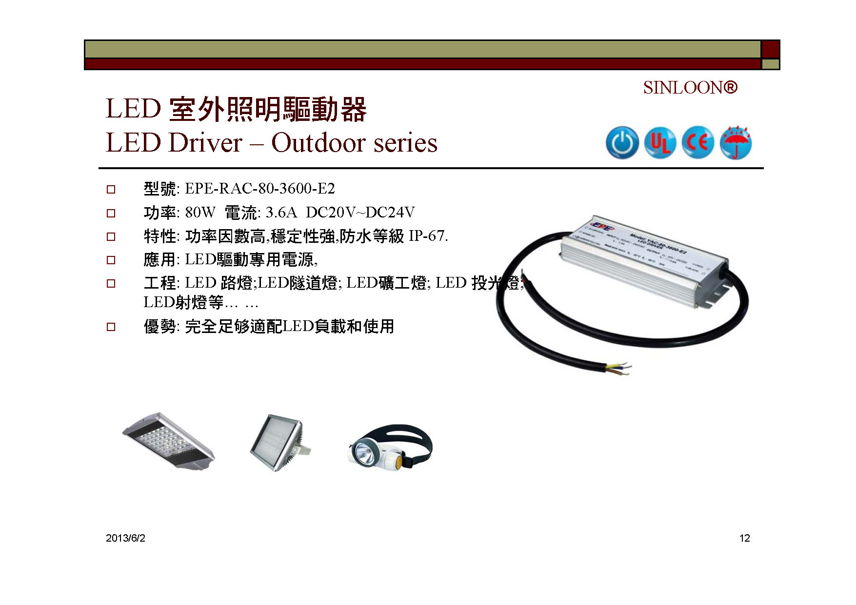 SINLOON® 無極燈家族中其功率由40W至300W不同的功率大小供選擇,顔色由2700K-6500K,顯色指數均在80以上。顯然,由於具有以上特點,無極燈在照明市場中的應用將更為普遍。