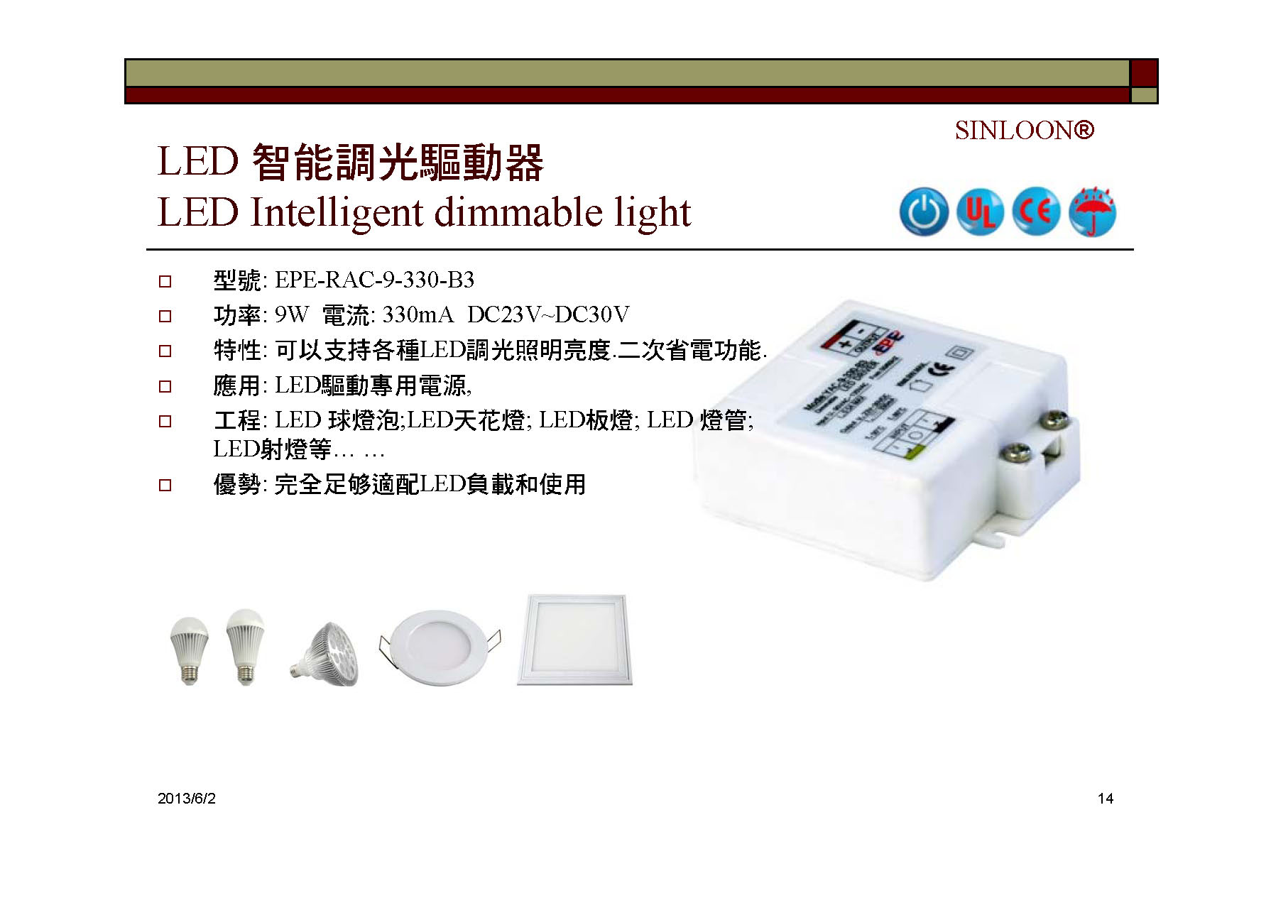 | SINLOON® | LED 可控硅調光控制器 | YAC-9-330-B3 | |||||