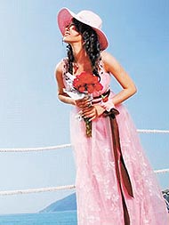頭 髮 微 曲 的 嬋 娟 輕 托 香 腮 充 滿 古 典 美 。( 小