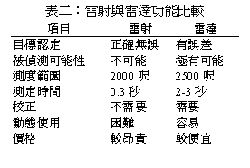 - 雷射二極管發射率很窄,其偵測器極易接收到精確的波長;因此在日間有強烈陽光時,仍能正常操作。